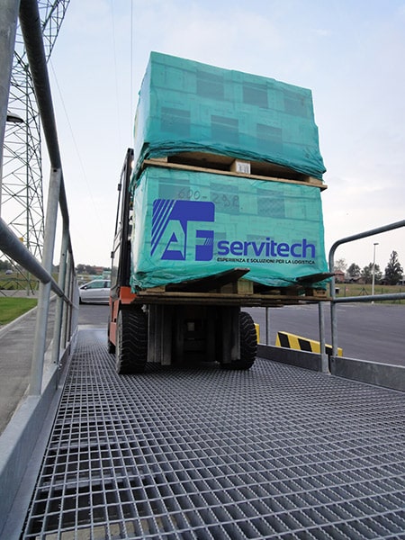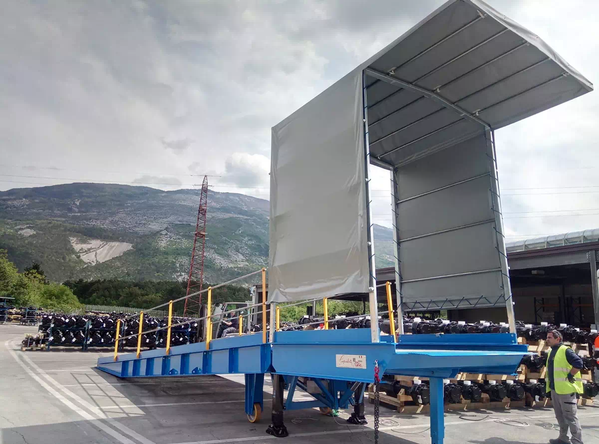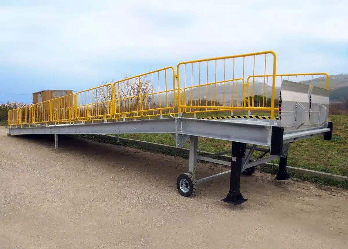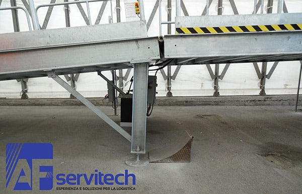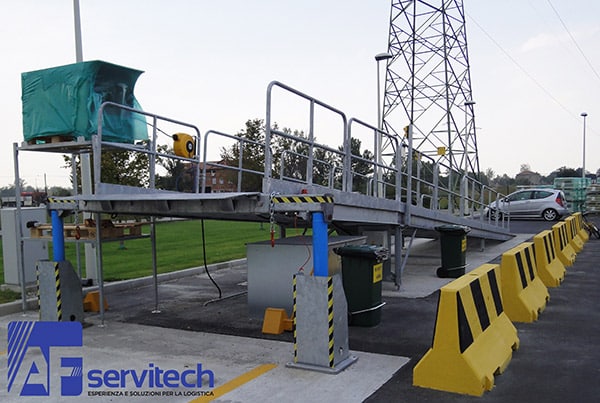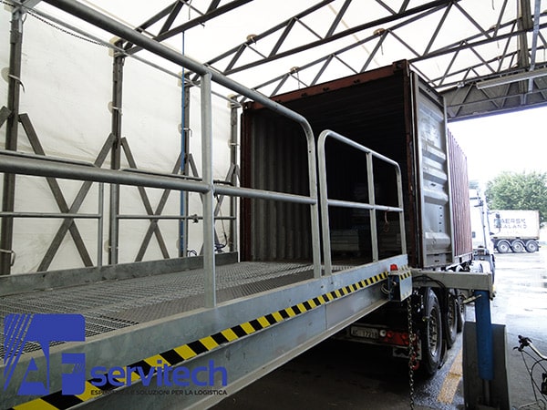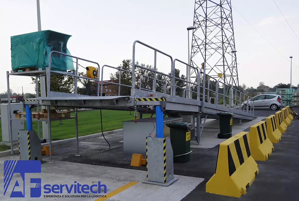 - Progettata per raccordare da terra camion e container nel pieno rispetto della pendenza imposta dalla normativa uni vigenti