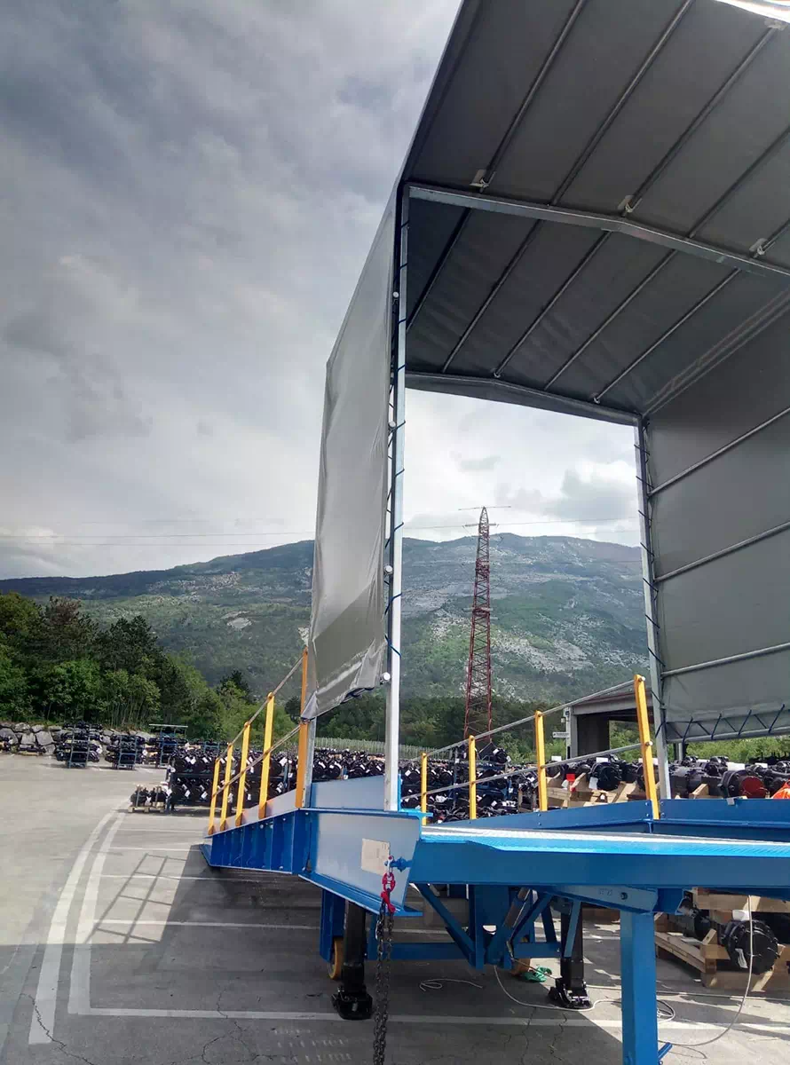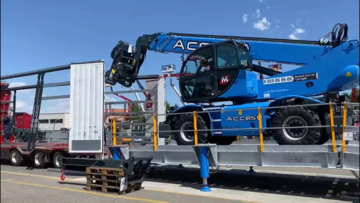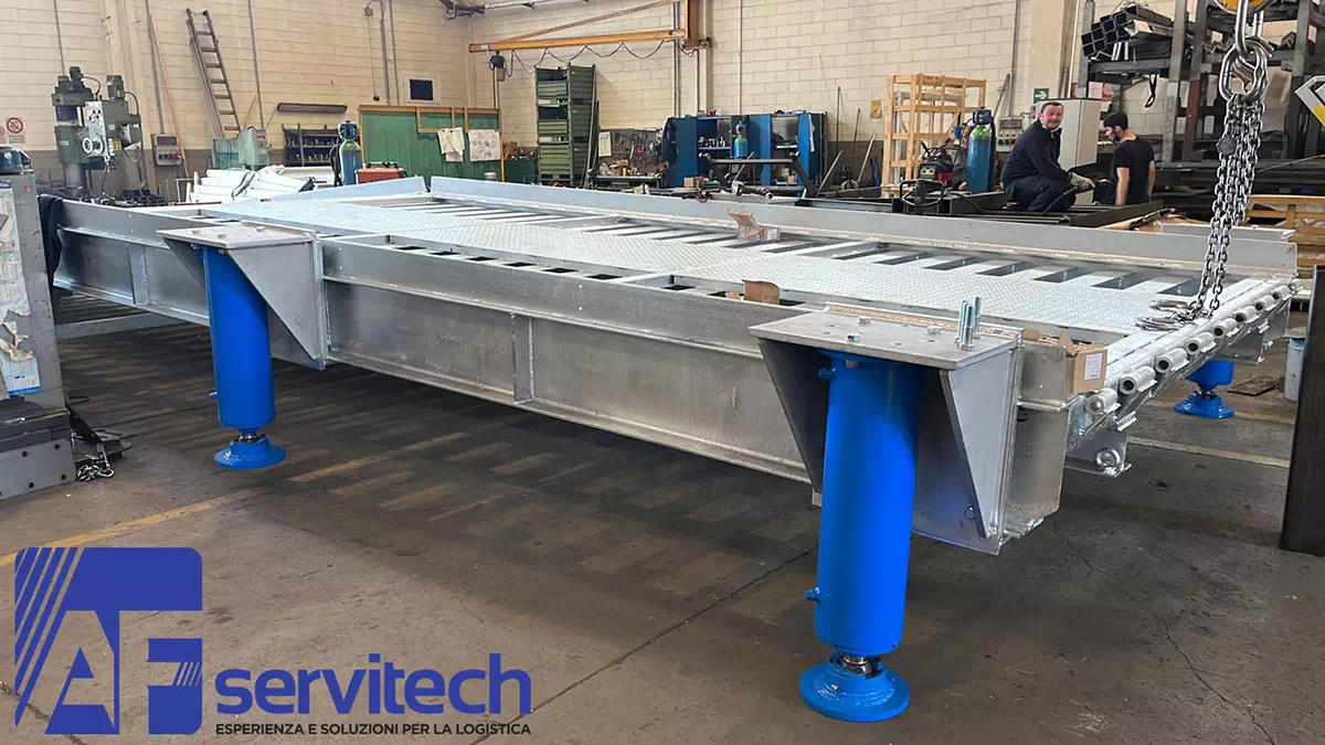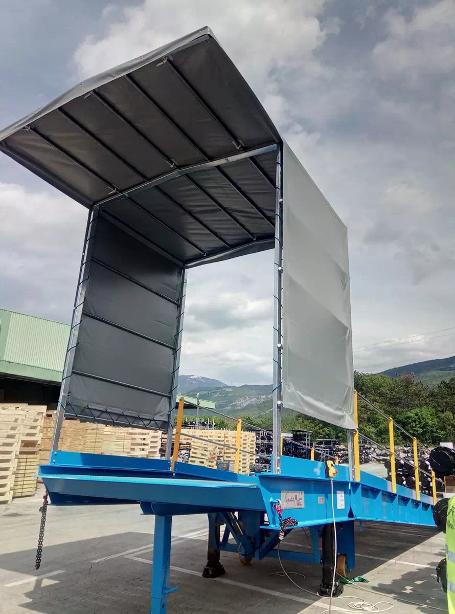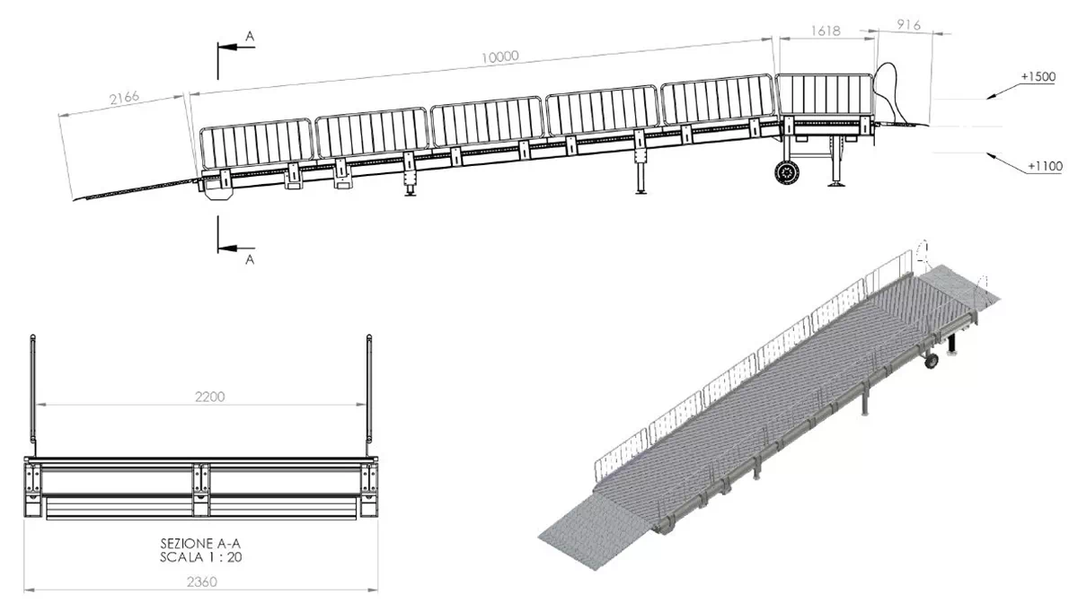 - Progettata per raccordare da terra camion e container nel pieno rispetto della pendenza imposta dalla normativa uni vigenti